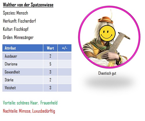 Hier schonmal die Heldenbögen von Steffi & Micha zur Vorlage für Ina (alle: gute Ideen willkommen!)