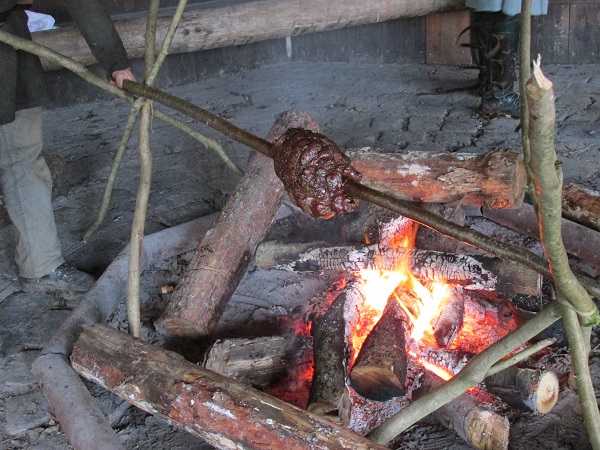Auf dem AK 64 hatte ich ein paar Rehkeulen auf einen Stock gebunden und über dem Feuer gedreht.